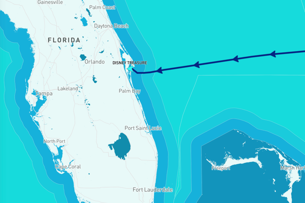 Stay updated on Disney Treasure's maiden voyage by tracking her journey in real-time with ShipAtlas or ShipIntel!