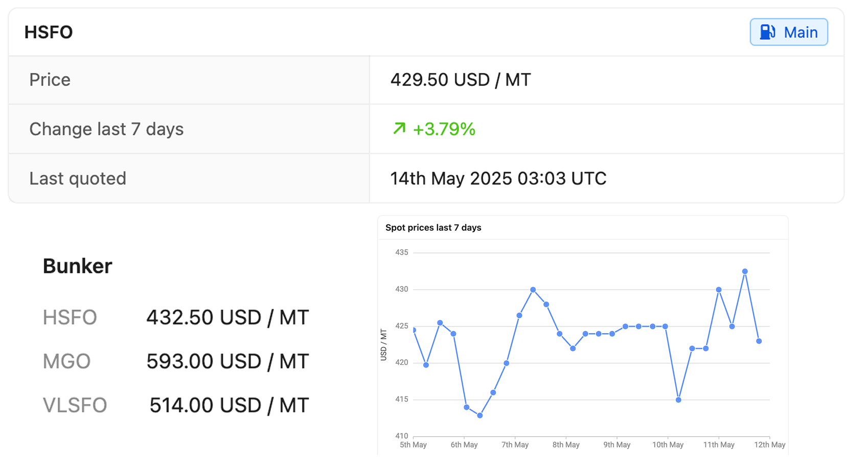 Find daily updated bunker prices in ports, historical data, short trends and forward curves for different bunker grades.