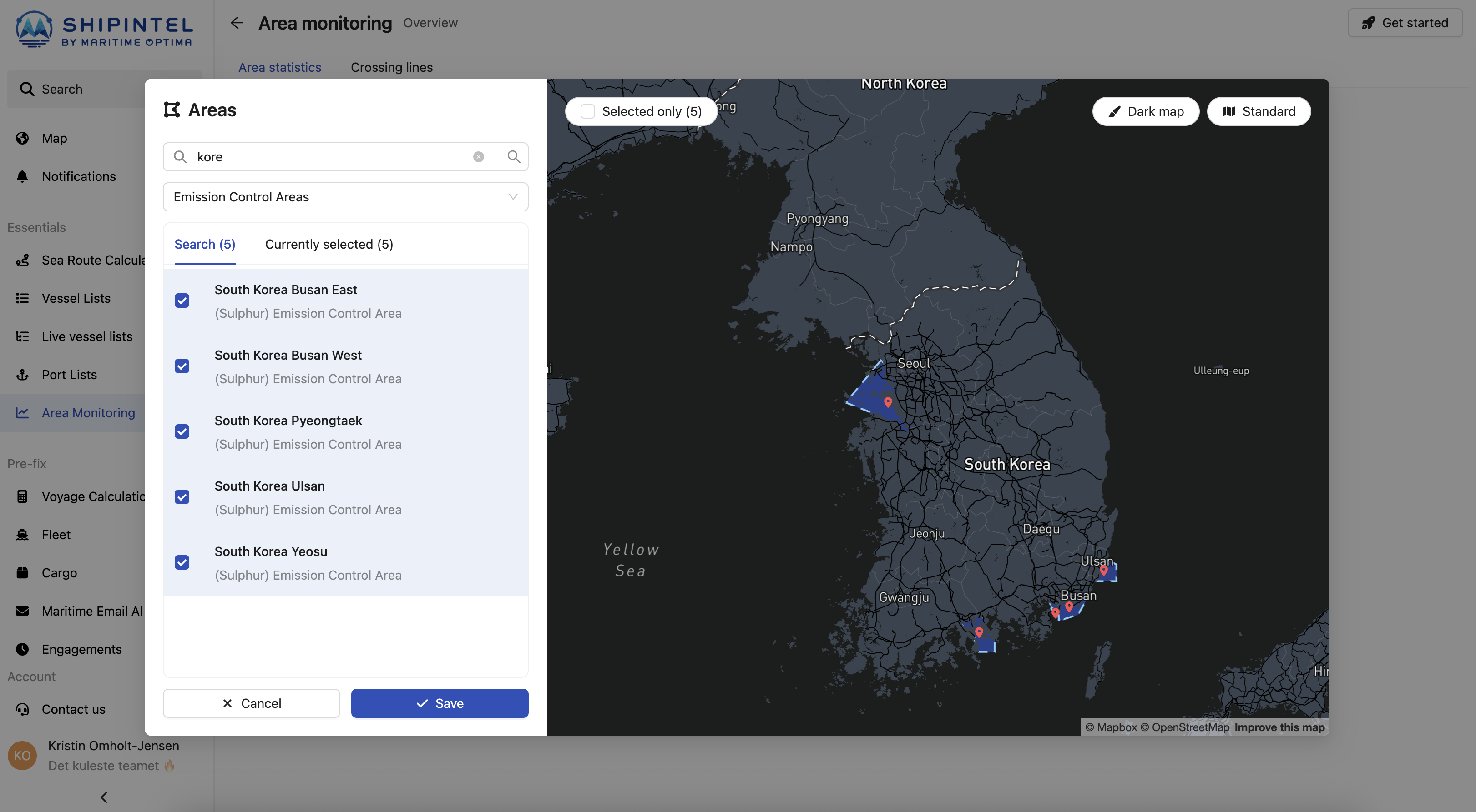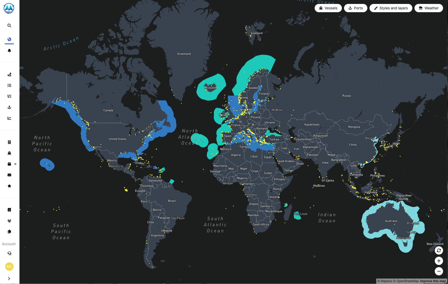 In ShipIntel and ShipAtlas, you can access and view all ECA and SECA zones on the map, with live tracking of vessels, port activities and more.