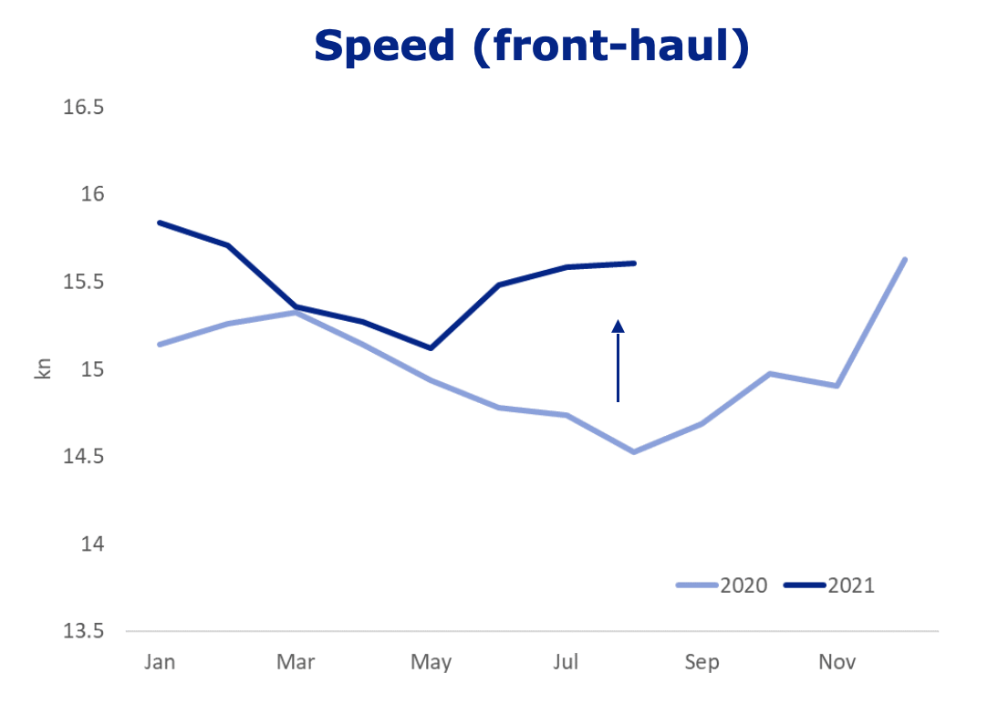 At the same time new LNG liquefaction capacity will begin to rise from 2022, thus improving potential for demand growth. Speed of the fleet is already high. The same applies to average distances travelled. So, less impact on the market is expected from speed and distances. Therefore, on balance before gas prices are considered the odds for a tighter market balance seem to be higher going forward in 2022/2023.
