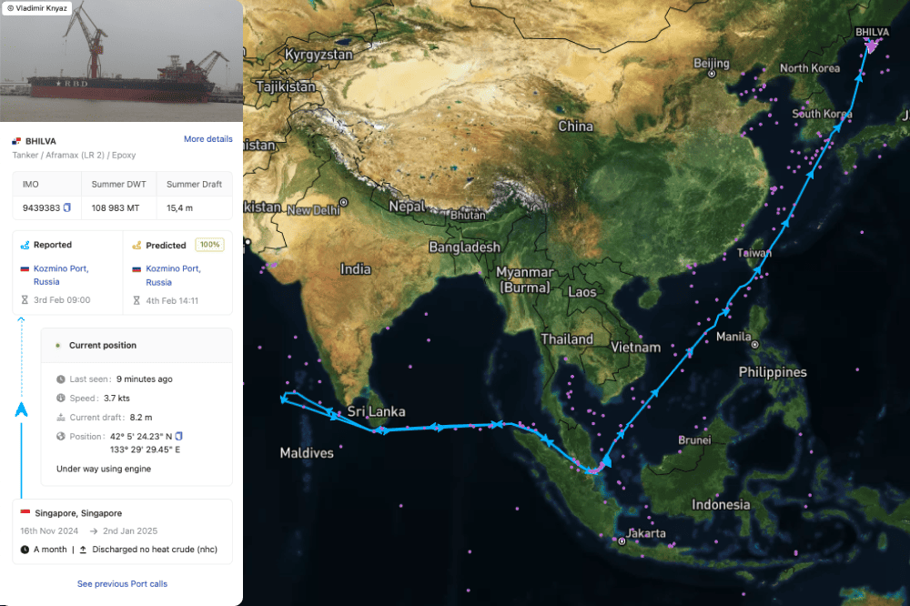 Another tanker, the Bhilva, is currently ballasting off Kozmino and has indicated it will dock at the port today, based on ship-tracking data from ShipIntel. The vessel, capable of carrying 740,000 barrels, made an abrupt U-turn in the Indian Ocean three weeks ago before setting its current course.