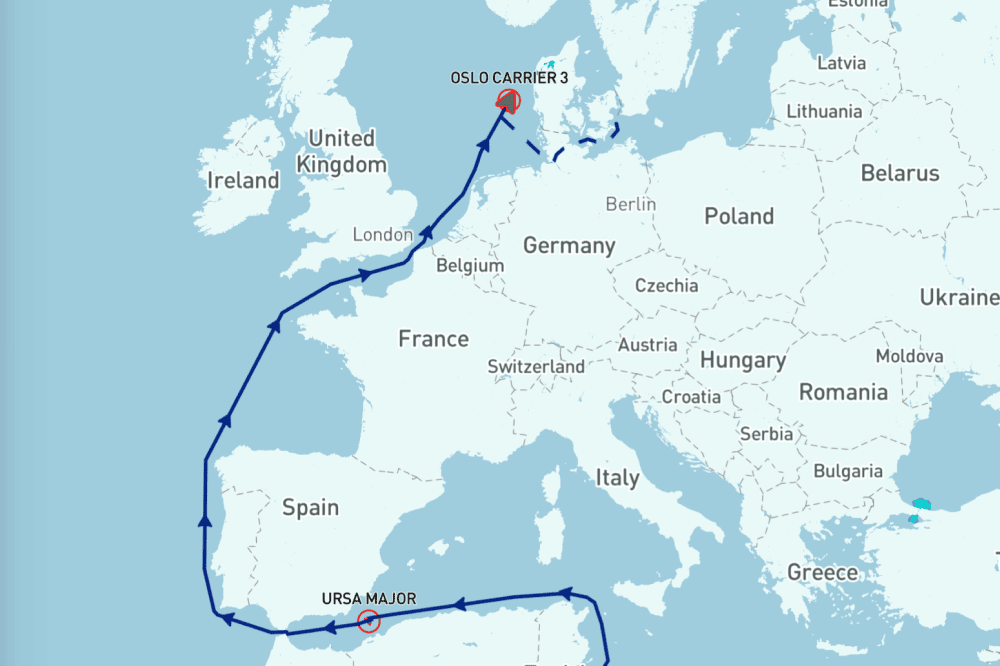 Data from Maritime Optima displayed the AIS tracks of both ships in the area where the Ursa Major sank.