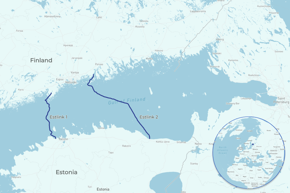 An illustration of the undersea power cable EstLink 2, which was declared damaged on Christmas Day 2024 / Photo: ShipIntel by Maritime Optima