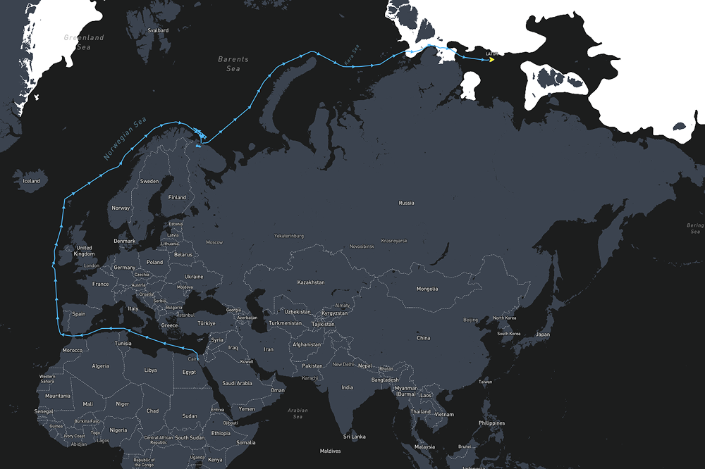 The EU-sanctioned Suezmax crude oil tanker LATUR has triggered fresh concerns over Arctic shipping safety and sanctions evasion after entering Russia’s Northern Sea Route (NSR) without a permit, known insurance, or up-to-date safety certification. The Comoros-flagged vessel, built in 2006, departed MURMANSK on August 6 carrying Russian crude, publicly listing China as its destination with arrival expected by September 6.
