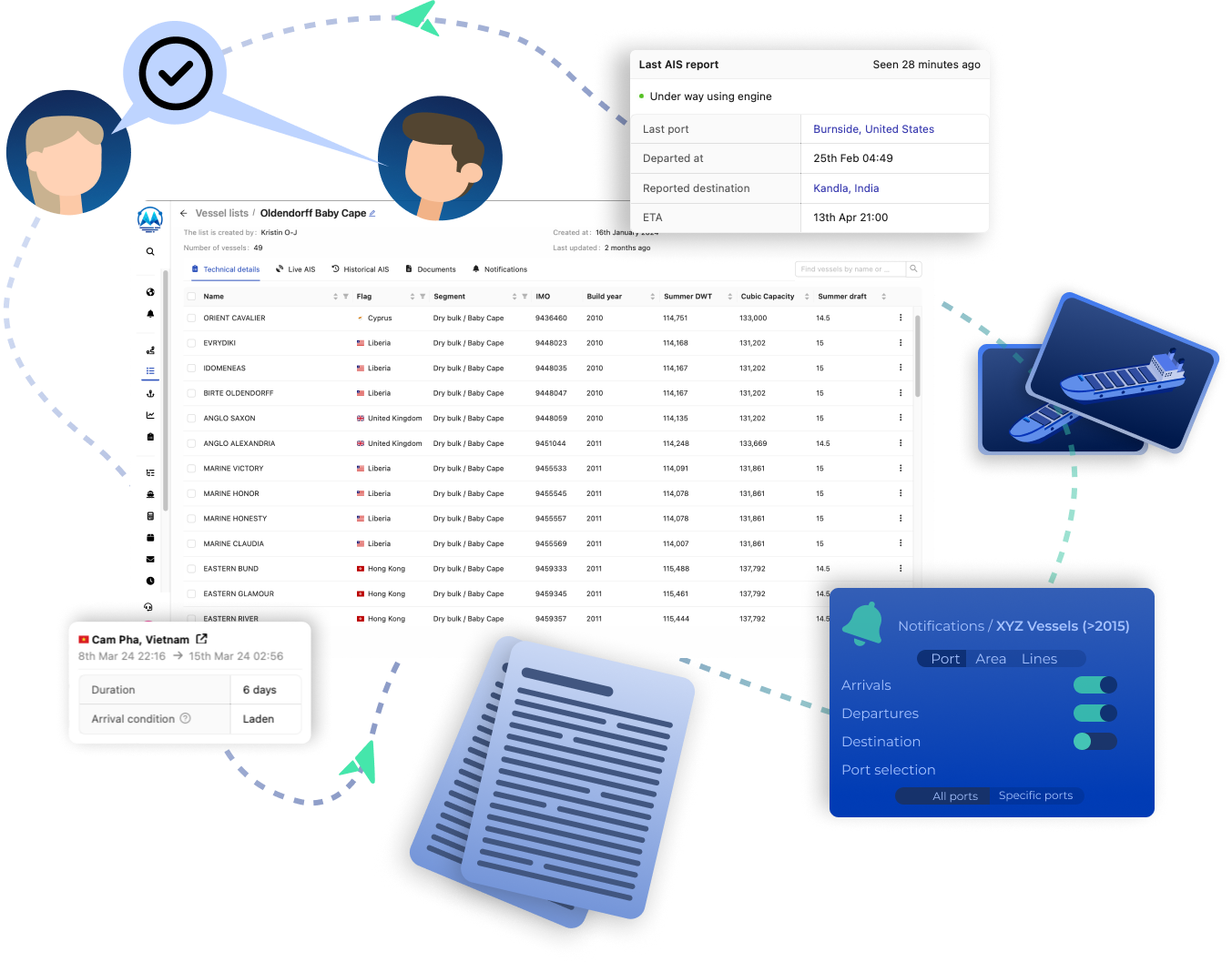 Easily match the right cargoes to your vessels — or the right vessels to your cargoes. Semi-automize voyage calculations and compare TCE, plan bunker consumption, and estimate carbon emissions — all in one place. Be ready to negotiate and fix in seconds.