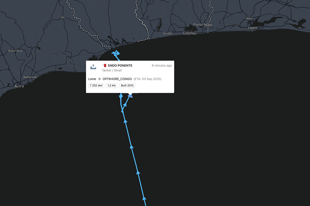 A chemical tanker "highly likely" to be the ENDO PONENTE, according to maritime risk firm Vanguard Tech, came under pirate attack off the coast of Togo — a scarce but stark incident in waters long considered a hotspot for maritime crime. The attack occurred approximately 56 nautical miles south of Lomé and involved sudden loss of speed and navigational control, based on AIS data supplied by ShipAtlas. This rare event underscores growing volatility in a region that had seen piracy ebb but now appears on the rise once again, according to Vanguard Tech.
