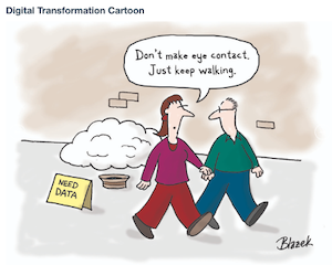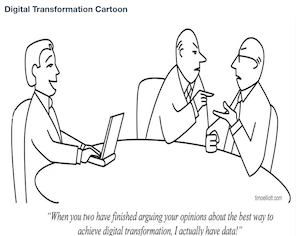 Most digital strategies don’t reflect how digital is changing economic fundamentals, industry dynamics, or what it means to compete in a digital world. Many companies also tend to avoid doing the boring "data work" and instead diving directly into machine learning and A,I and build their analysis on “old data” stored in data silos while continue working as they have always done? It might give an organisation some quick gains/selling point, but regression analysis has been around for many years, and machine learning and algorithms might have some more data to work with, but if we don’t spend time on checking the quality of our data, the only real difference the organisation will notice is a lot of frustrated employees and increased capital spending on external ICT contractors, because we provide "garbage out" at an much greater phase than "the old days".